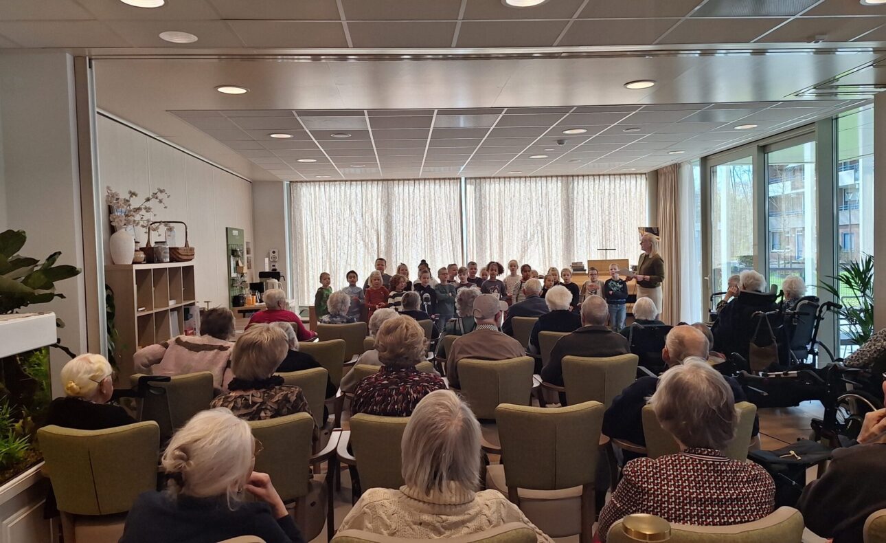 Op donderdag 12 maart bezochten de kinderen van groep 3/4 van de Johannes Calvijnschool in Vlaardingen Uitzicht. Tijdens dit bezoek zongen zij samen met onze bewoners een aantal liederen. Ook lazen zij een boekje voor.